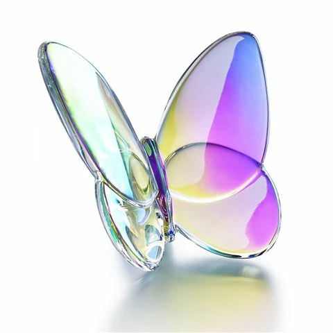 Poised to flutter off, the Baccarat crystal butterfly glints vibrantly with bright colour. The wings fan out grandly, echoing the shape characteristic of the Amazonian breed.