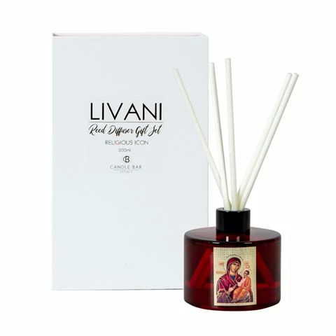 Presented in a red glass vase featuring a religious Icon – The Holy Mother & Child, this is a heartfelt gift for any occasion. The vase is filled with hand poured fragrance oil, scented with Livani – an enchanting aromatic blend of ancient frankincense and myrrh with balsam, spice, patchouli and sandalwood. It’s also a traditional religious incense, found in Greek Orthodox homes and churches, making it the perfect seasonal addition to your home.