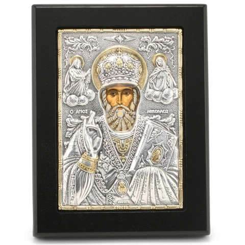 Each beautiful Clarté Icon is made in Greece from shimmering pure sterling silver set into a deep mahogany-coloured wooden backing. The design itself is also accented with majestic sweeps of 24 karat gold, that gives each piece a depth and beauty that truly set it apart.
