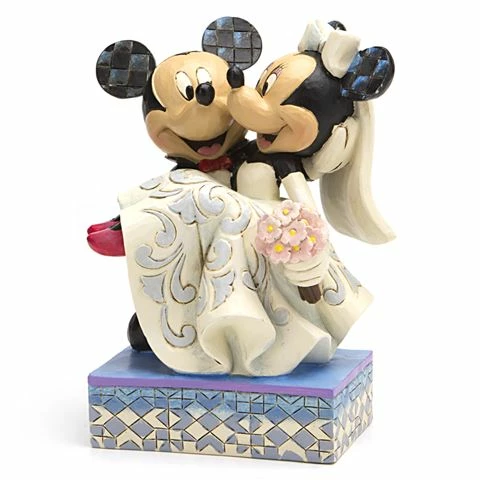 Imagine the Disney wedding of Mickey and Minnie Mouse! Every character from every movie would be there, cheering on the bride and groom, probably outside Disney’s famous castle as fireworks shot overhead. This adorable figurine captures the happy couple at their sweetest!