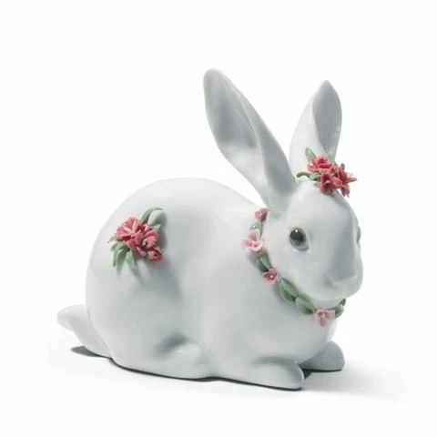 Lladro’s Attentive Bunny Figurine stands out for its realistic modelling, its expressive gaze and above all, its beautiful decorative work, consisting of delicate porcelain flowers, meticulously crafted petal by petal by the expert hands of the artists at Lladró.