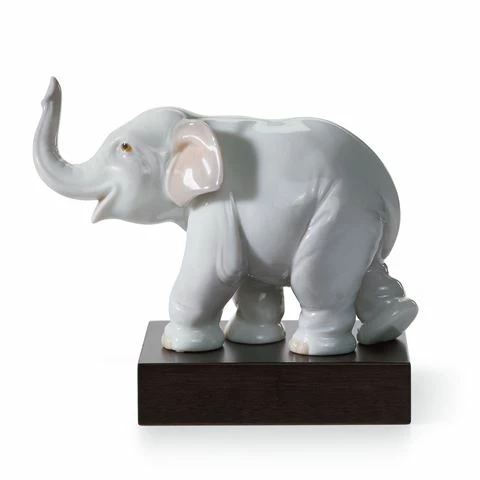The auspicious origins of the “lucky elephant” can be traced back to Hindu culture and the elephant-headed god Ganesha, the opener of the way and a god of luck. However, the belief that an elephant with its trunk raised as a symbol of good luck is generally an American belief, perhaps interlinked with the British suspicion that horseshoes must face upwards or luck will disappear. Whatever the case, this Lucky Elephant, crafted in glazed porcelain with a joyous expression on its face, is sure to bring good vibes all around.