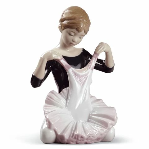 Part of the excitement of a dance routine for children is the costume they will wear, and few costumes are as special as a ballerina’s tutu. This young girl, preparing herself for a debut performance, holds a pastel pink tutu against her, while her blonde hair has been swept back in a sophisticated manner. Originally sculpted in 2014 by Javier Molina, My Debut Dress tells a special story without saying a word.