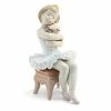 This “My Debut” figurine captures the magic of a ballerina’s very first performance on stage. From the way her delicately folded tutu frills around her pink bodice, to the way she clutches her first bouquet of flowers—each one a delicate cluster of individually formed petals—this dancer is very lovely indeed. Who knows what her next performance may hold, but for now, she is a star!