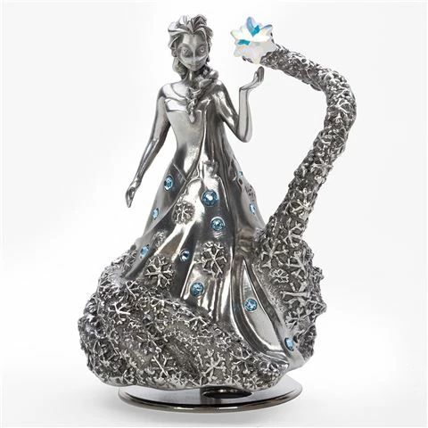 - Sculpted in pewter on a stand with ice blue Swarovski crystal snowflakes.