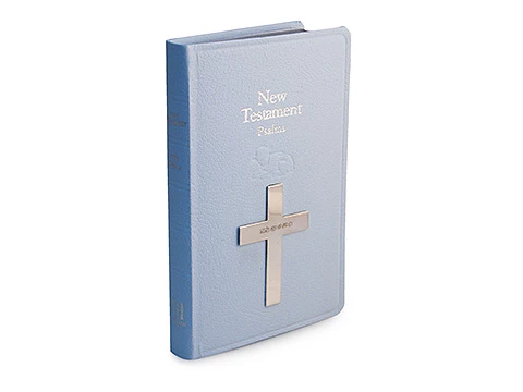 A beautiful gift for a very special day, this leather-bound Bible features a simple sterling silver cross on the front cover that gleams brilliantly in the light. An adorable image of a lamb is also embossed lightly into the leather – a charming touch to a wonderful keepsake.