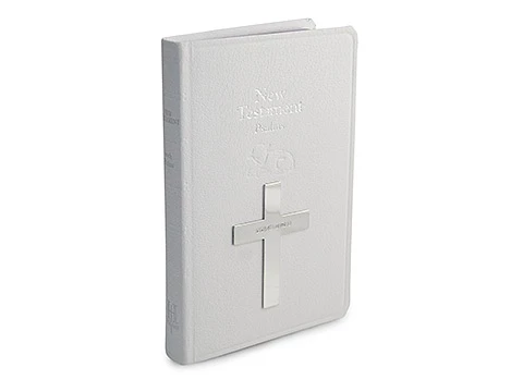 A beautiful gift for a very special day, this leather-bound Bible features a simple sterling silver cross on the front cover that gleams brilliantly in the light. An adorable image of a lamb is also embossed lightly into the leather – a charming touch to a wonderful keepsake.